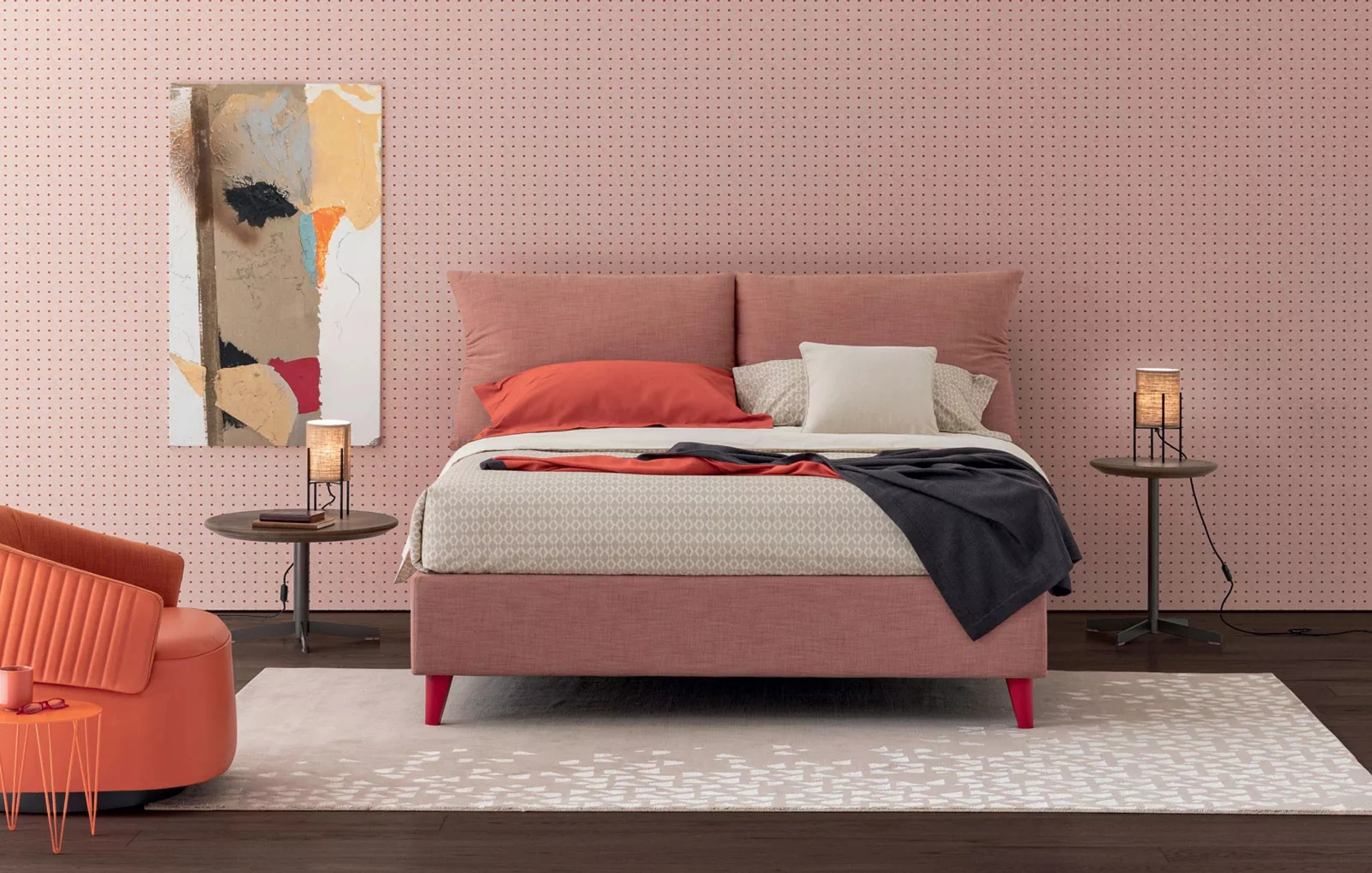 Se desideri creare un'atmosfera intima e distensiva, il modello visibile in foto fa per te: nella stanza del riposo dovrai creare un'atmosfera distensiva, per farti ritemprare le energie come meritate. Con il Letto Plissé con contenitore di Oggioni del noto e conosciuto brand, specialista del settore, potrai valorizzare la tua zona notte assicurandoti comodità, funzionalità e un design pulito. Se desideri ammobiliare spazi moderni, ti aspettiamo per illustrarti la nostra linea di Arredamento Casa per realizzare il tuo progetto su misura. Affidabilità dei materiali e grande comfort sono gli ingredienti che distinguono tutti i prodotti della marca, tra cui anche il letto in tessuto in foto.